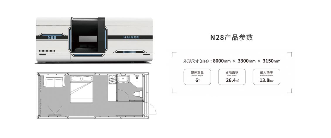 太空舱 N28 以 “极端气候适应性与居住舒适度平衡” 为设计灵感,深度贴合俄罗斯寒冷多风的地域特征。用方正规整的轮廓适配多样场地,以圆角线条柔化硬朗外观,再通过小窗户、厚墙壁的定制化设计,搭配高品质保温隔音材质,打造 “无惧严寒、温暖如家” 的科技旅居空间。