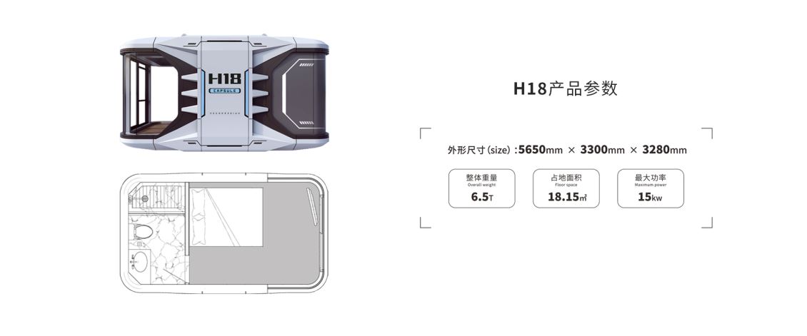 太空舱 H18 以 “小而美” 为设计灵感,将现代极简美学与实用主义深度融合,从线条勾勒到细节打磨,每一处都彰显对精致旅居生活的追求,旨在用紧凑空间承载完整舒适的居住体验,为文旅场景注入灵动活力。